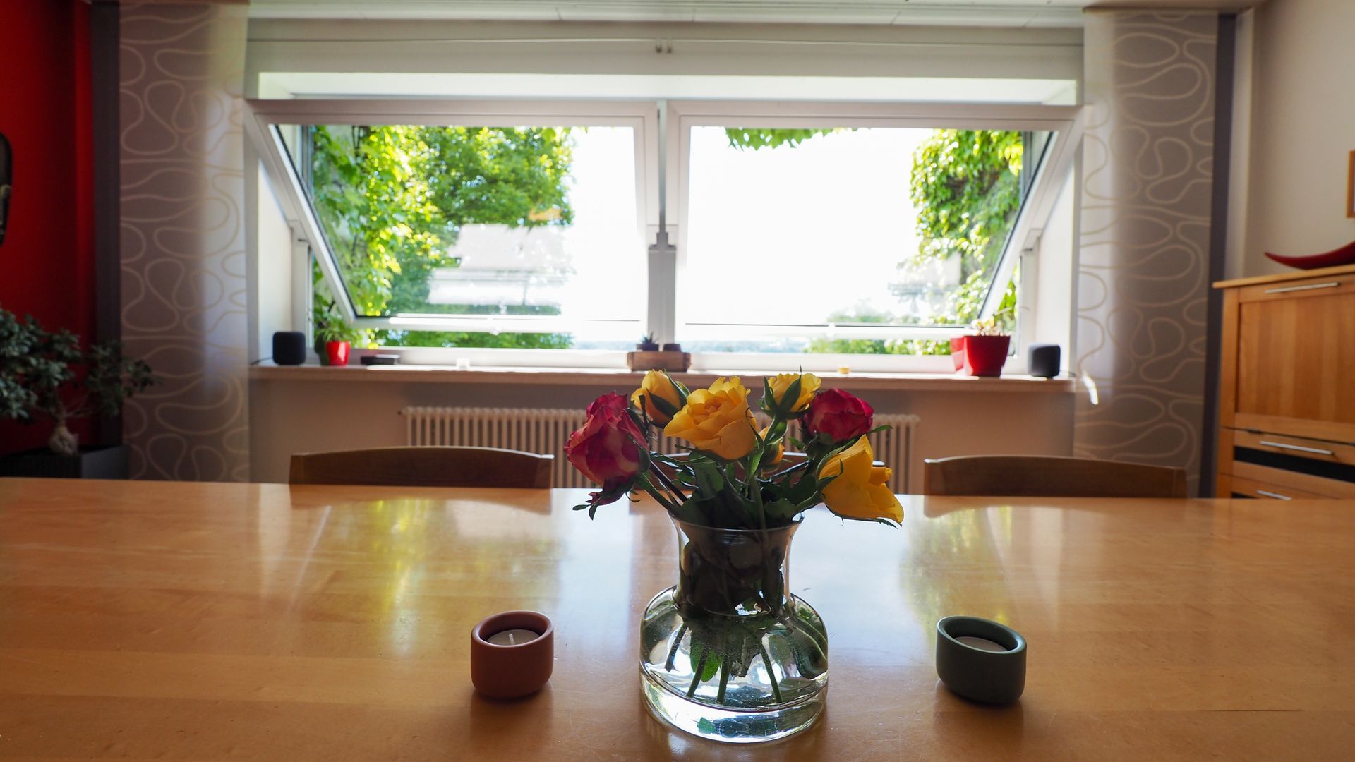 Der weitläufige Wohn- und Essbereich mit direktem Zugang zur großen Terrasse und dem Garten ist lichtdurchflutet und bietet einen wunderschönen Ausblick ins Grüne. Der Garten selbst zeichnet sich durch einen gepflegten Baumbestand aus und bietet vielfältige Möglichkeiten zur Erholung und Entspannung.