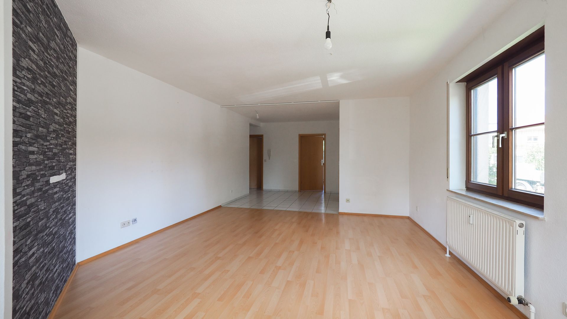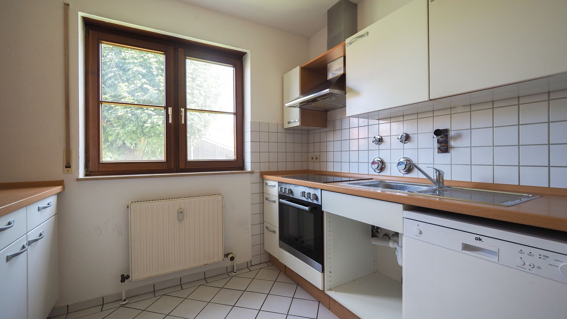 Die Wohnung überzeugt aber nicht nur durch Ihre direkte Lage am Baumbach sondern vor allem durch einen praktischen und hellen Grundriss. Gelungene Raumgrößen und eine praktische Aufteilung sorgen für ein tolles Wohngefühl. Im Eingangsbereich finden Sie eine Garderobennische sowie einen Fliesenboden, welcher sich auch im Tageslichtbad und der Küche befindet. Das Tageslichtbad verfügt über eine Dusche, eine Wanne, ein Waschbecken, Waschmaschinenanschluss sowie ein WC. Die Küche verfügt über eine funktionale Einbauküche.