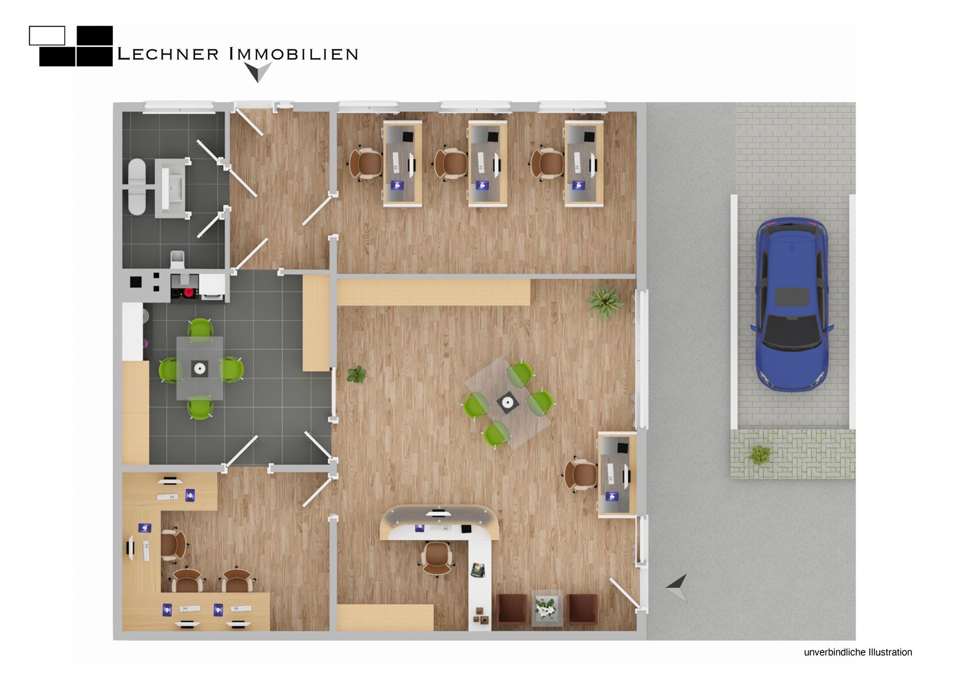 Mit dem Auto ist Poppenweiler über die L1100 und die B27 schnell erreichbar. In wenigen Minuten gelangen Sie zur A81 (Anschlussstelle Ludwigsburg-Nord). Dadurch bestehen ideale Verbindungen nach Stuttgart, Heilbronn und in das gesamte Ballungsgebiet. Die zentrale, dennoch ruhige Lage macht den Standort sowohl für Kundenverkehr als auch für Mitarbeiter besonders attraktiv.