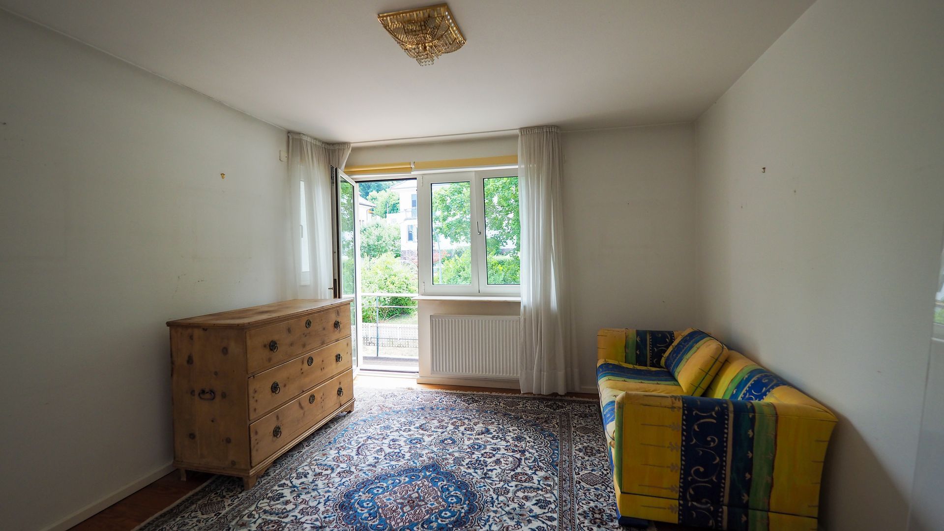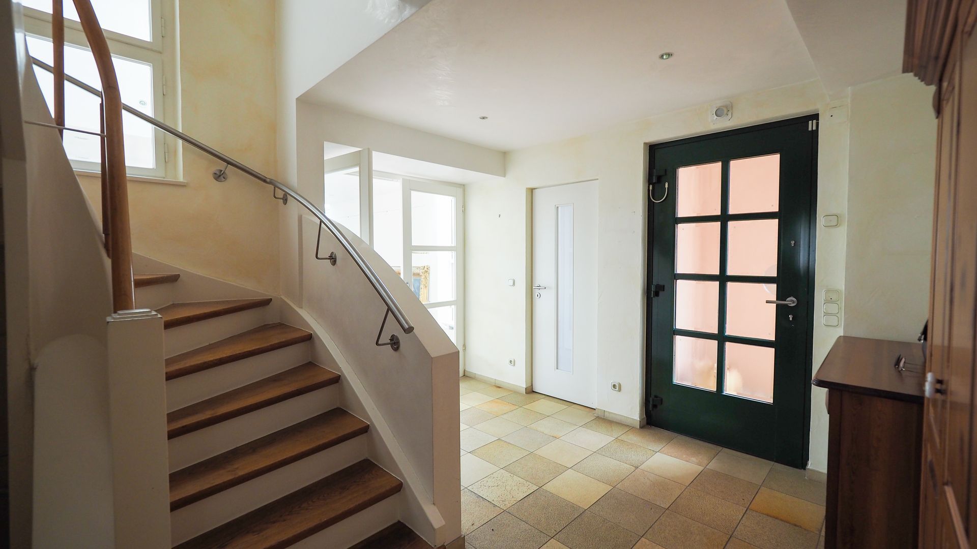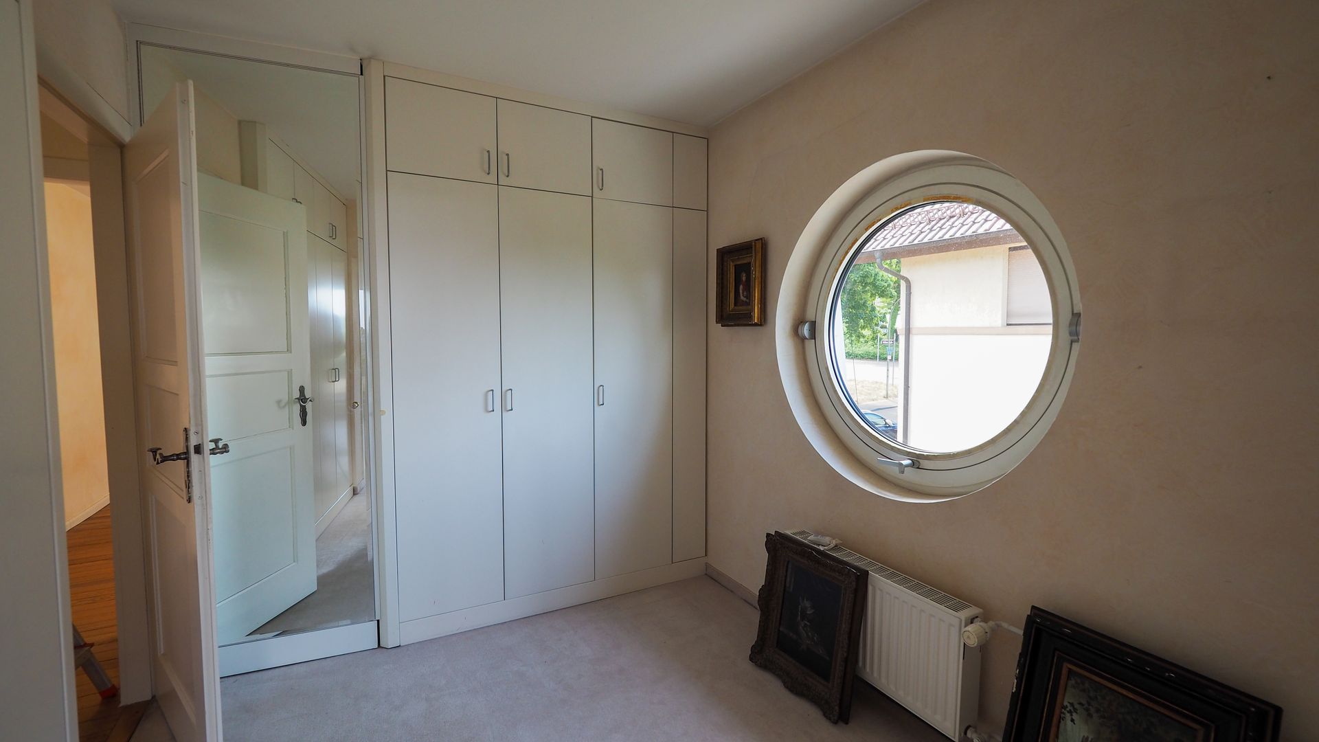 Im ursprünglichen Gebäudeteil finden sich klassische Elemente wie Holzkasettentüren mit stilgerechten Beschlägen, ein Dielenboden im Obergeschoss sowie eine Holztreppe, die mit Glaselementen zum Anbau überleitet. Vom Schlafzimmer aus gelangen Sie direkt auf den Balkon – ideal für den ersten Kaffee am Morgen. Zudem sind ein Badezimmer en Suite sowie eine Ankleide direkt angebunden.