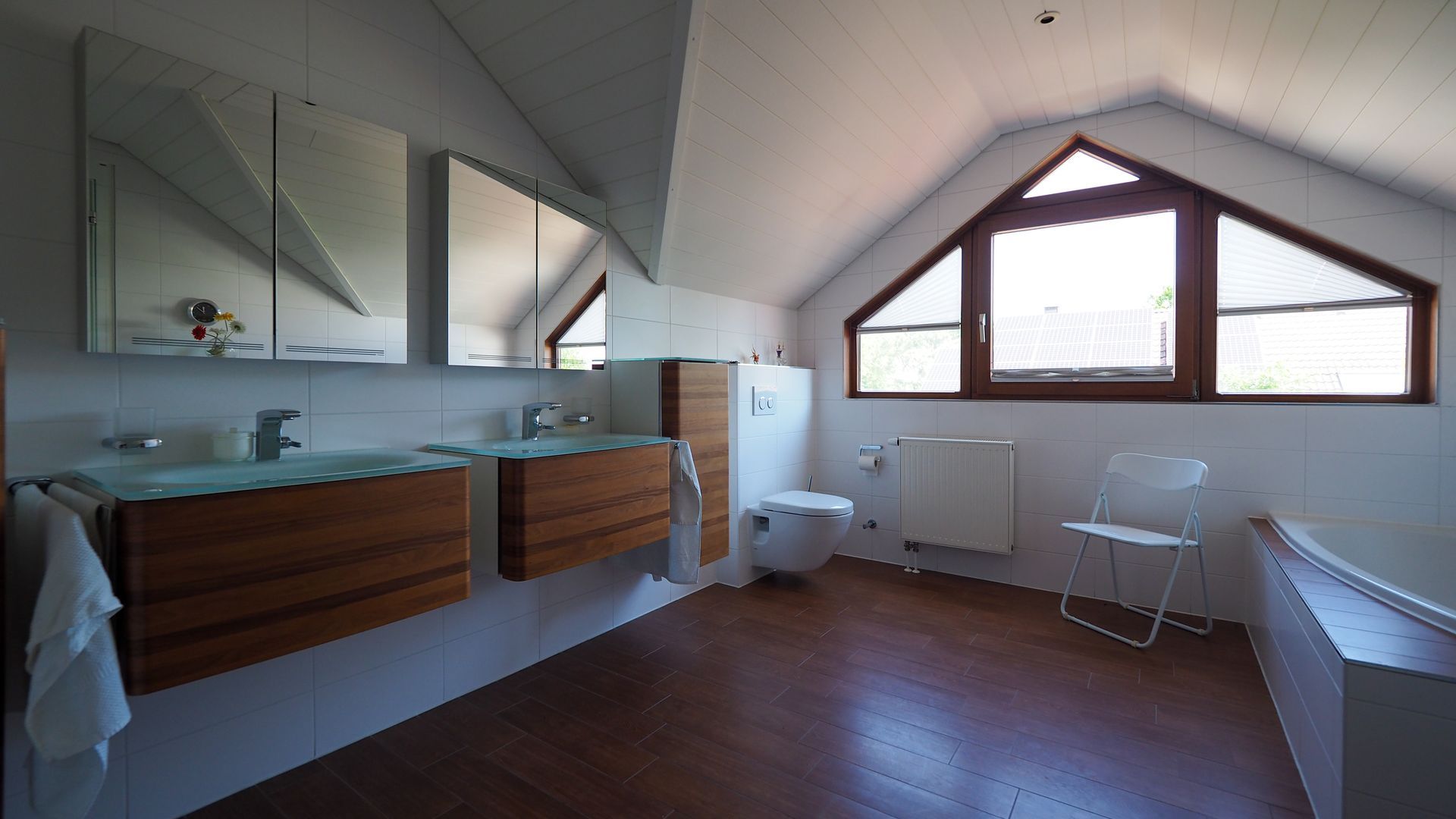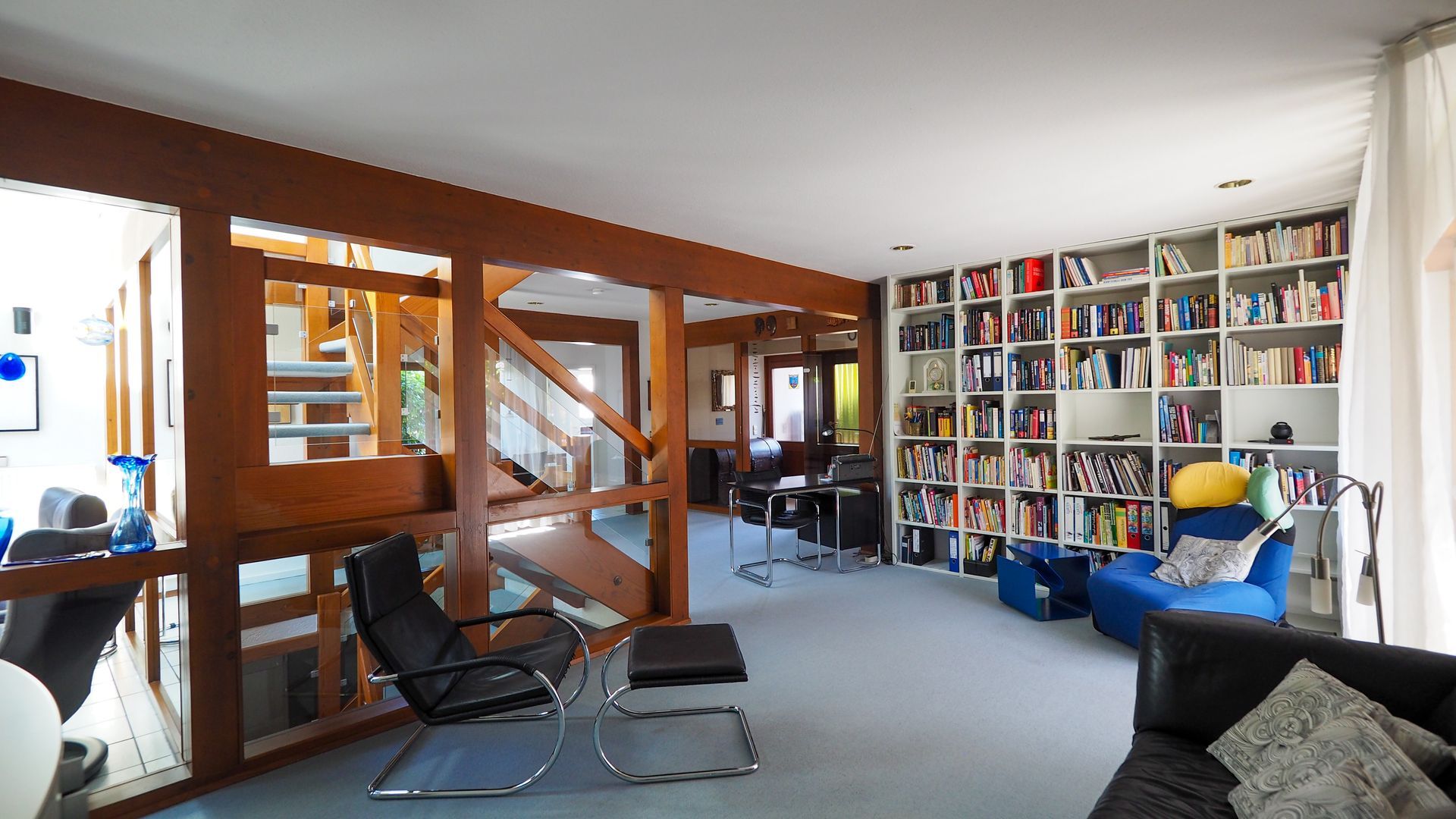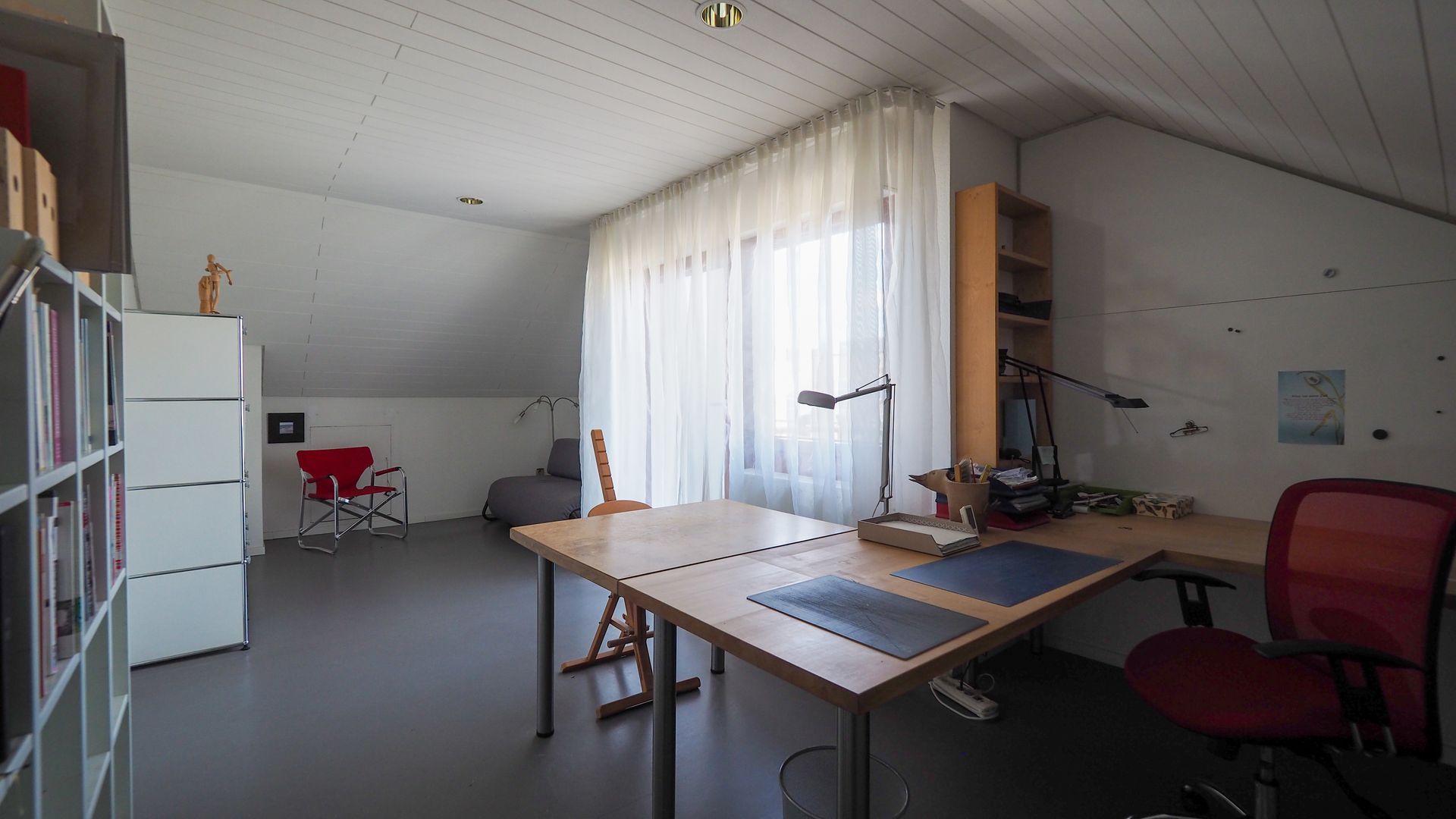 Im Essbereich steht Ihnen ein Kachelofen zur Verfügung. Das Haus bietet von jedem Zimmer (ausgenommen Büro) aus Zugang zu einer Terrasse, oder einem Balkon. Die Hauptterrasse in Südausrichtung ist uneinsehbar und der toll angelegte Garten bieten einen natürlichen Rückzugsort. Die Küche ist abgeschlossen und einer Einbauküche mit Garnitarbeitsplatte aus 2012 ausgestattet. 2012 wurde zudem das Tageslichtbad im Obergeschoss saniert, welches eine Badewanne, Dusche, WC und zwei Waschbecken bietet. Das Badezimmer trennt das geräumige Kinderzimmer mit Balkon und das Schlafzimmer mit Ankleide und Balkon und bilden somit das Dachgeschoss. Im Galeriebereich des Flurs haben Sie zudem Raum für Kunst oder eine Lese-/Arbeitsecke. Das Untergeschoss bietet einen großen Flur, einen Kellerraum sowie einen Technikraum mit Waschküche. Ein kleiner Wellnessbereich entsteht durch die Sauna, Raum für Fitnessgeräte sowie der Dusche und dem Zugang zum Garten.