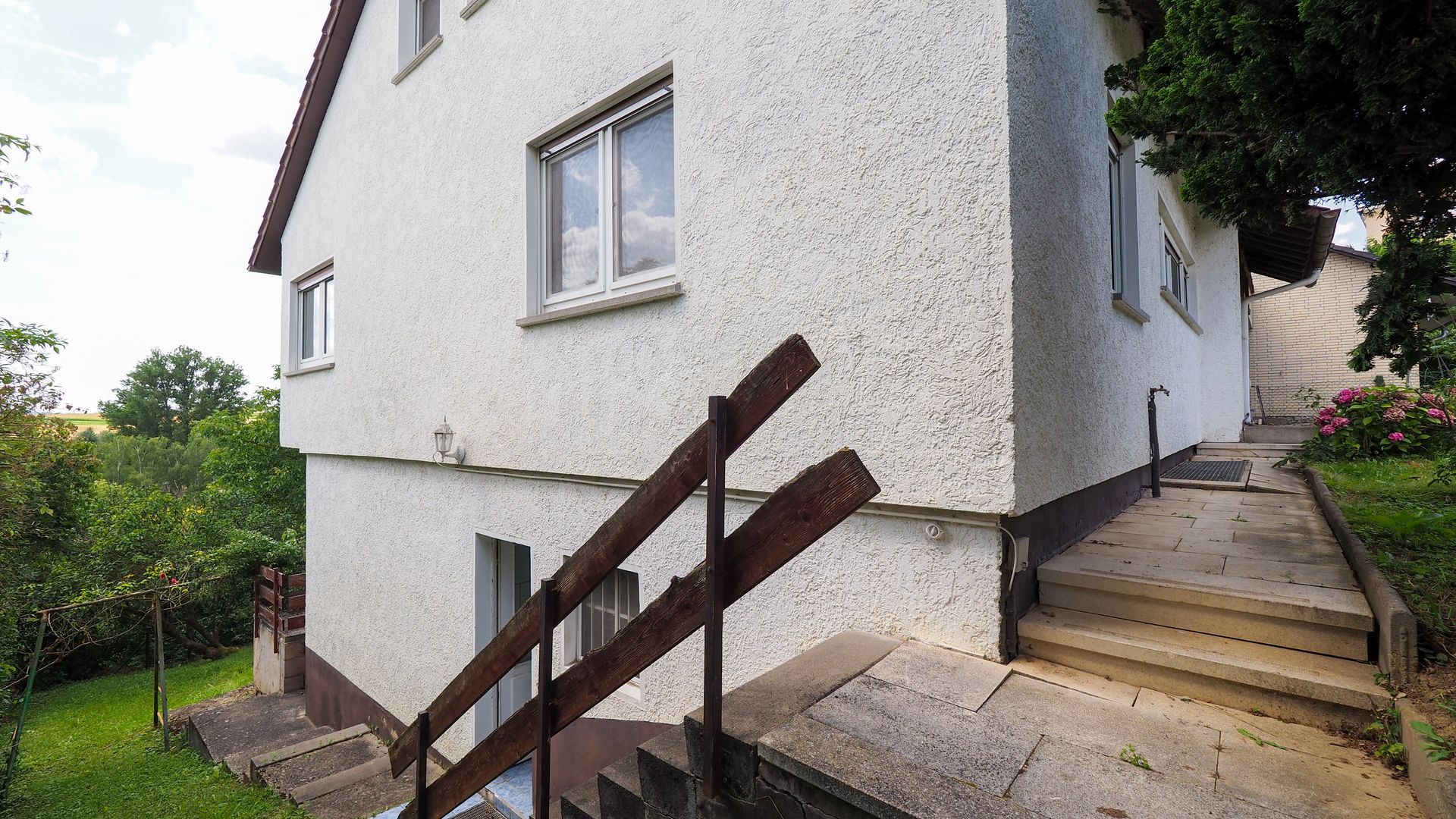 Das Grundstück erstreckt sich über ca. 482 qm und verfügt über einen Garten in leichter Hanglage, der viel Platz für Freizeitaktivitäten im Freien bietet. Eine Einzelgarage mit Vorplatz rundet das Angebot ab und bietet ausreichend Platz für Fahrzeuge und zusätzliche Lagermöglichkeiten.
