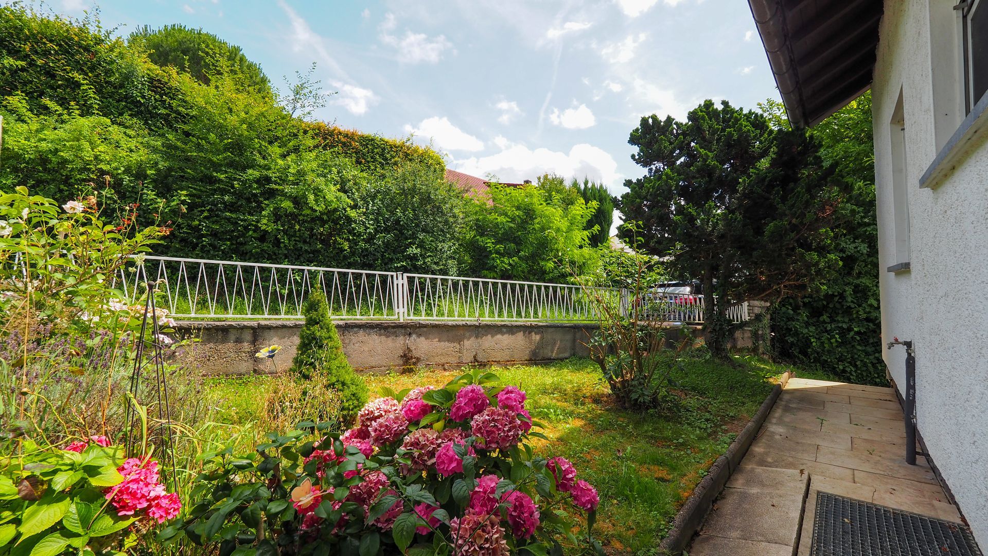 Im Untergeschoss befindet sich eine weitere 2-Zimmer-Wohnung mit eigenem Tageslichtbad. Diese Einheit bietet Zugang zu einer großen Terrasse, die perfekt für entspannte Stunden im Freien und dem schönen Garten geeignet ist. Ein hübscher Vorgarten führt zur Einliegerwohnung und bietet zusätzlich einen reizvollen Zugang zum Haus.