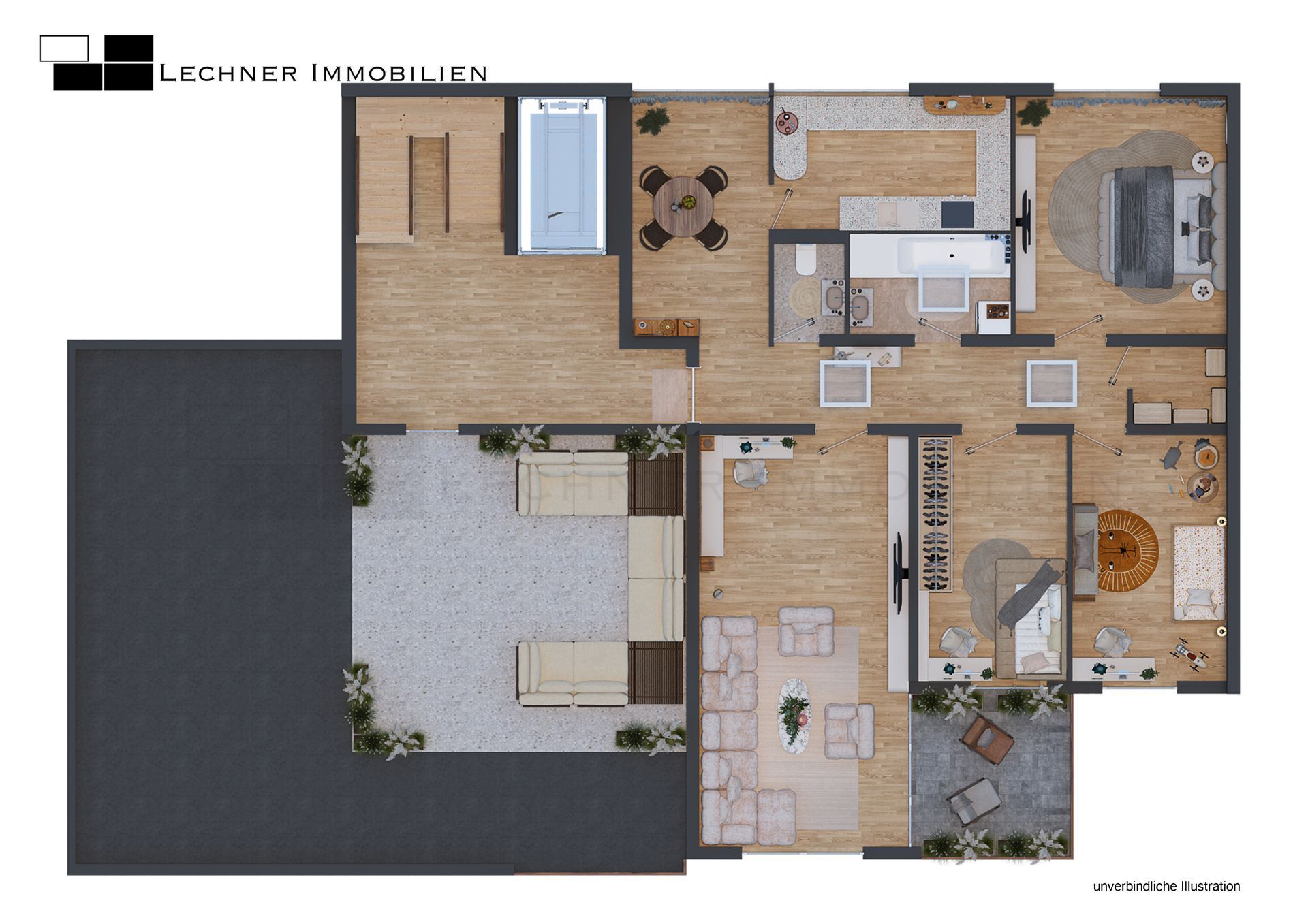 Die 4-Zimmer-Wohnung beeindruckt nicht nur durch ihre großzügige Raumaufteilung, sondern auch durch die gelungene Kombination aus modernem Komfort und zeitlosem Design. Genießen Sie die Sonnenstrahlen auf Ihrer eigenen Loggia oder entspannen Sie auf der großzügigen 30 Quadratmeter Dachterrasse, die Ihnen einen atemberaubenden Blick über die Umgebung von Bittenfeld ermöglicht.