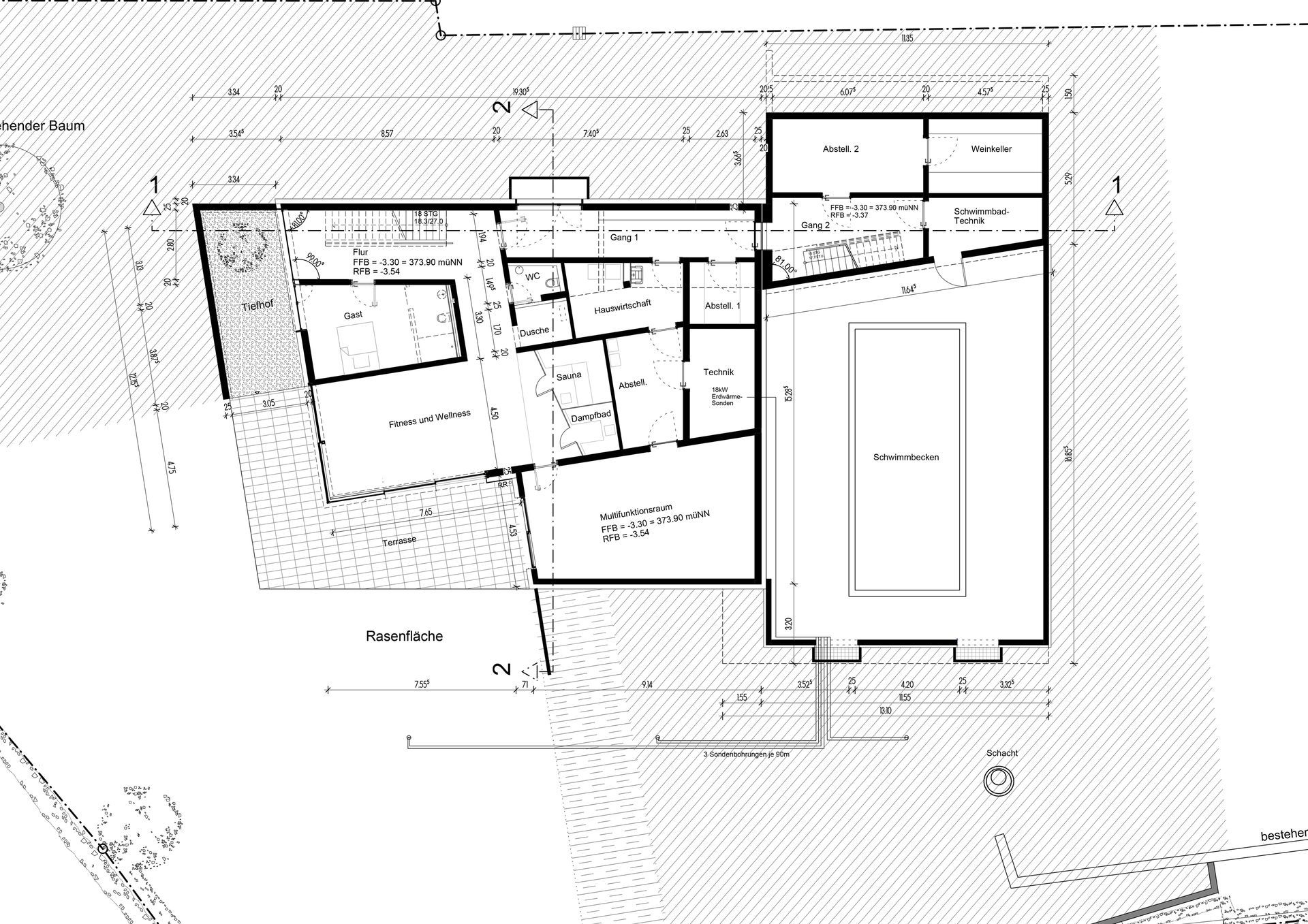 Das Gartengeschoss erwartet Sie mit einem exklusiven Wellnessbereich, darunter eine Sauna und ein Dampfbad, sowie einem Fitnessraum, der es Ihnen ermöglicht, jederzeit in Bestform zu sein. Ein großzügiger Wohnbereich mit eigener Terrasse rundet dieses paradiesische Refugium ab. Für Ihre Gäste befindet sich hier auch ein eigenes Gäste-Zimmer mit separater Terrasse und eigenem Badezimmer.