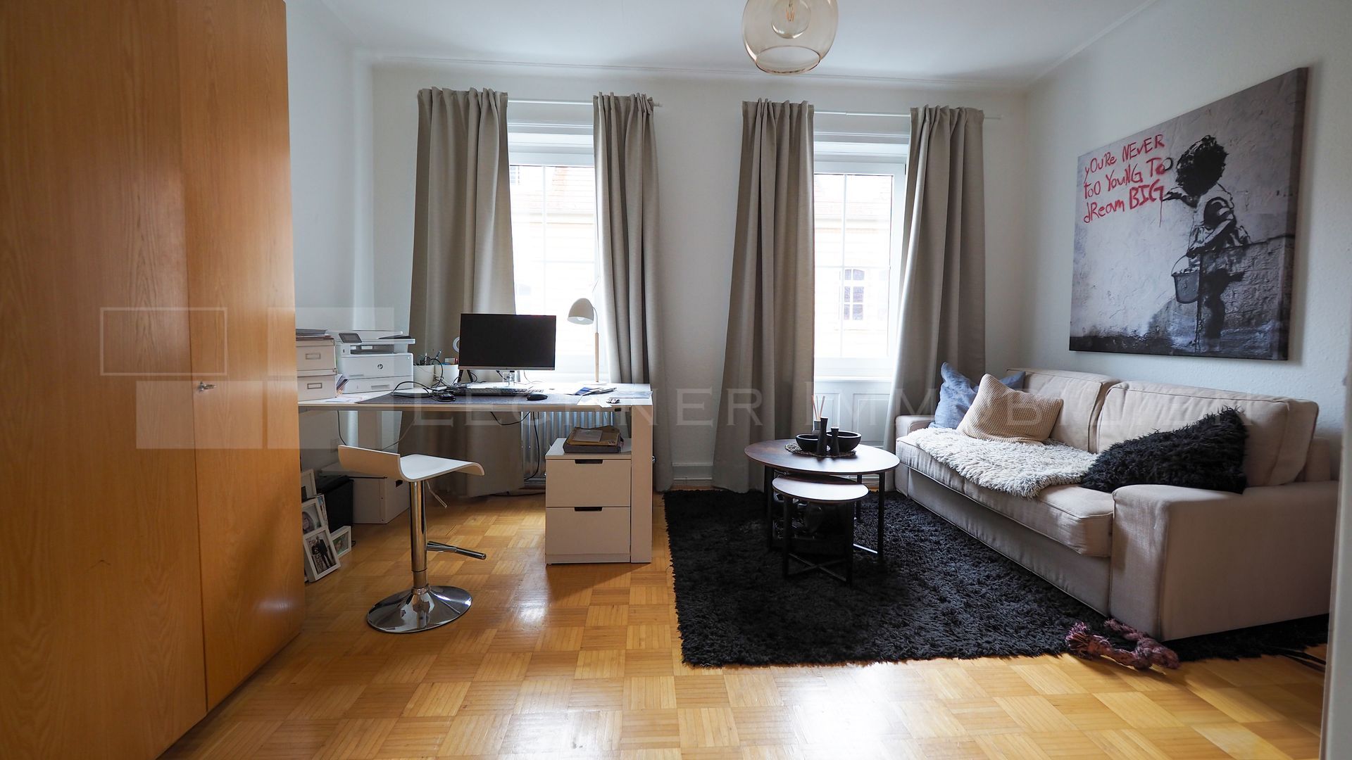 - Büro/Praxis (ca. 65 qm, frei): Im Erdgeschoss erwartet Sie eine großzügige Büro- oder Praxisfläche mit vielfältigen Gestaltungsmöglichkeiten.